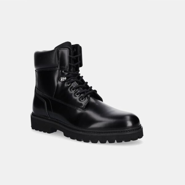 HUGO MEN LEATHER BOOTS WITH CUSHIONED COLLAR AND LUG SOLE BLACK