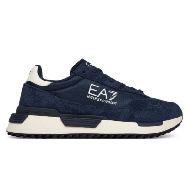 EMPORIO ARMANI SNEAKER VINTAGE RUNNING NYLON+COW SUEDE+PU SKY CAPTAIN +OFF WHITE