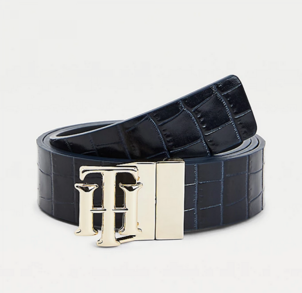 TOMMY HILFIGER WOMAN TH LOGO REVERSIBLE LEATHER BELT 3.0 BLUE CROCO BLACK