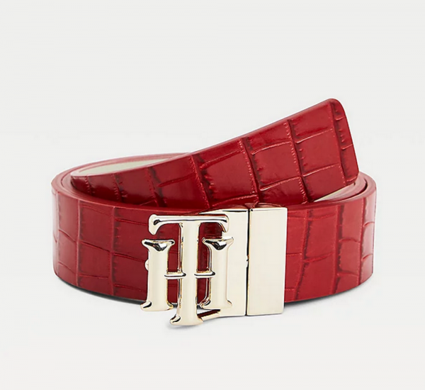 TOMMY HILFIGER WOMAN TH LOGO REVERSIBLE LEATHER BELT 3.0 RED CROCO ALABASTER