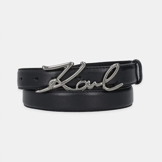 KARL LAGERFELD WOMEN K/SIGNATURE H2.5 LEATHER BELT BLACK-GUNMETAL