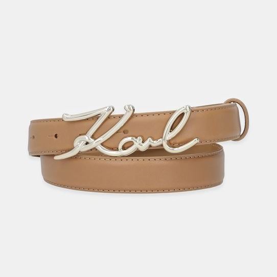KARL LAGERFELD WOMEN K/SIGNATURE H2.5 LEATHER BELT CARAMEL