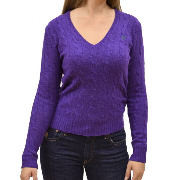 POLO RALPH LAUREN WOMAN KIMBERLY CLASSIC LONG SLEEVE V NECK SWEATER VALLEY PURPLE HEATHER