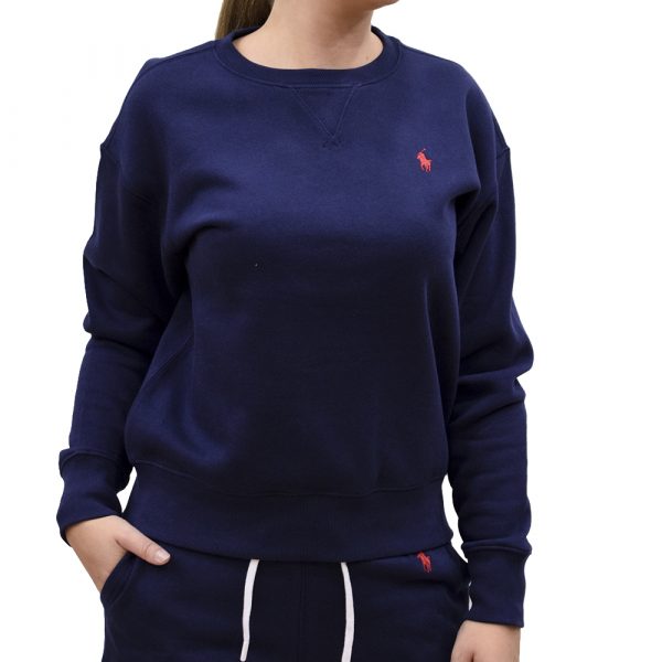 POLO RALPH LAUREN WOMAN POLO BEAR LIGHTWEITGHT FLEECE CREWNECK BLUE