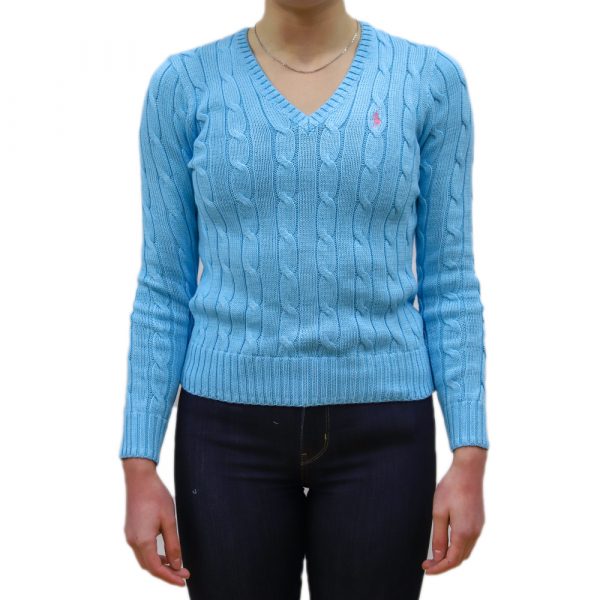 POLO RALPH LAUREN WOMAN BSR LONG SLEEVE V-NECK SWEATER FRENCH TURQUOISE