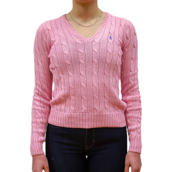 POLO RALPH LAUREN WOMAN BSR LONG SLEEVE V-NECK SWEATER CARMEL PINK