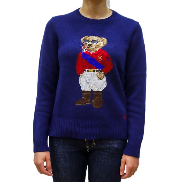 POLO RALPH LAUREN WOMAN LONG SLEEVE BEAR PULLOVER FRENCH NAVY MULTI