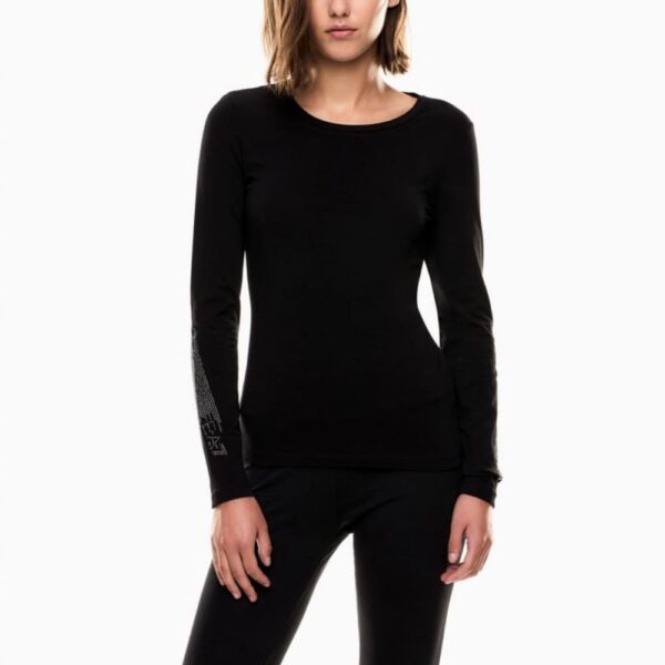 EMPORIO ARMANI WOMAN LOGO SERIES STRETCH JERSEY LONG SLEEVED T-SHIRT BLACK