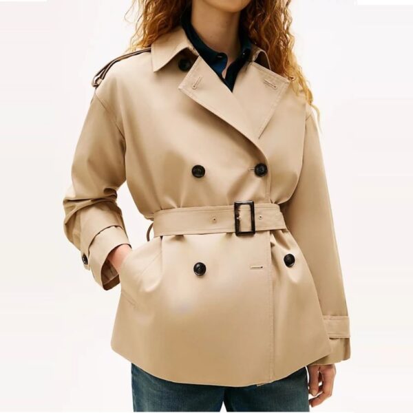 TOMMY HILFIGER WOMEN’S WATER REPELLENT RELAXED SHORT TRENCH COAT BEIGE