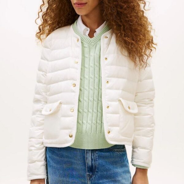TOMMY HILFIGER WATER REPELLENT LIGHTWEIGHT DOWN SLIM JACKET IVORY SILK
