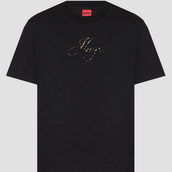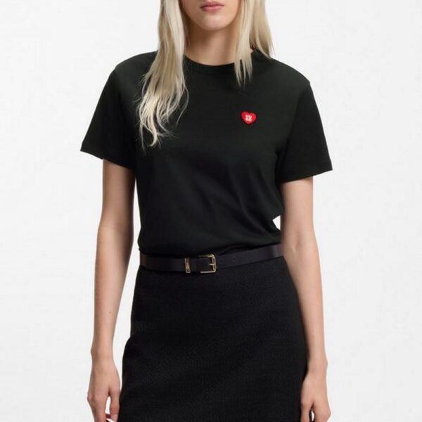 HUGO WOMAN COTTON – JERSEY T-SHIRT WITH HEART LOGO BLACK