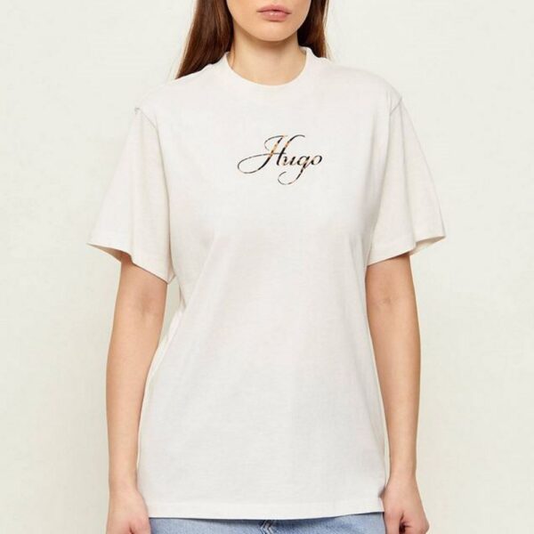 HUGO WOMAN T-SHIRT VINTAGE WITH PRINTED LOGO HUGO NATURAL