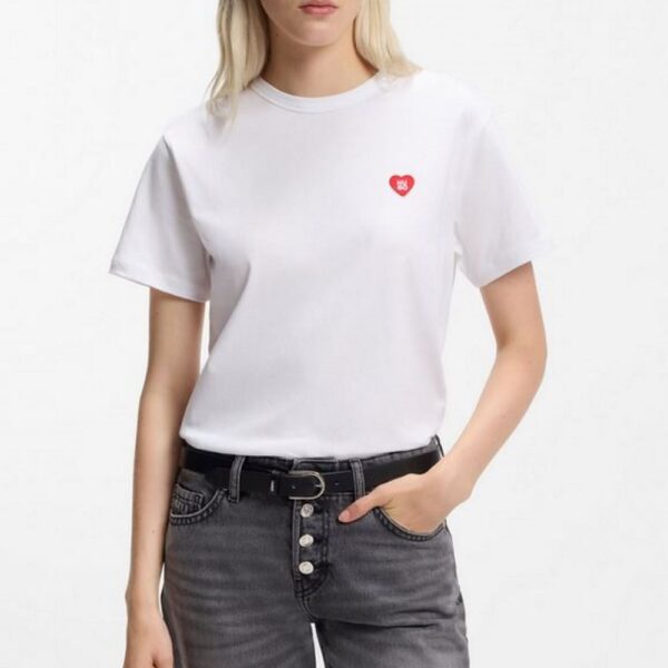 HUGO WOMAN COTTON – JERSEY T-SHIRT WITH HEART LOGO WHITE