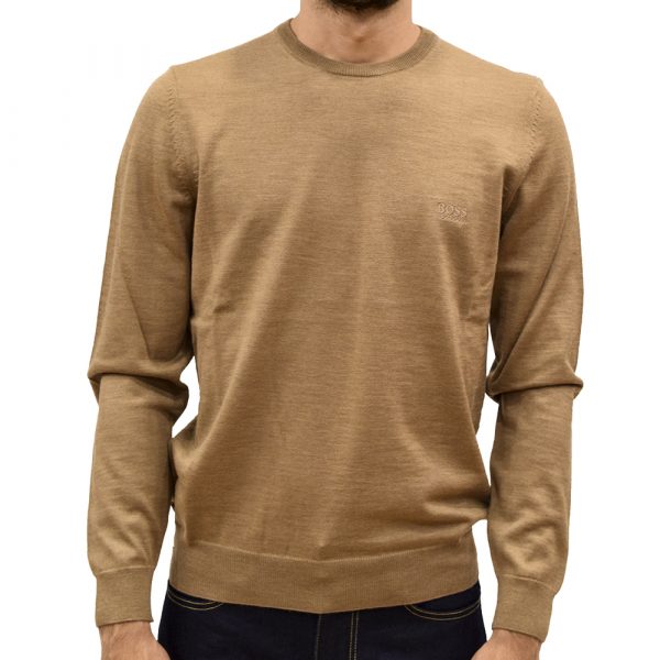 BOSS MEN BOTTO-L CREW NECK SWEATER MEDIUM BEIGE