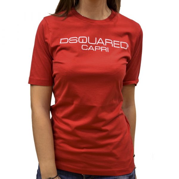 DSQUARED2 COTTON JERSEY CAPRI T-SHIRT WOMAN RED