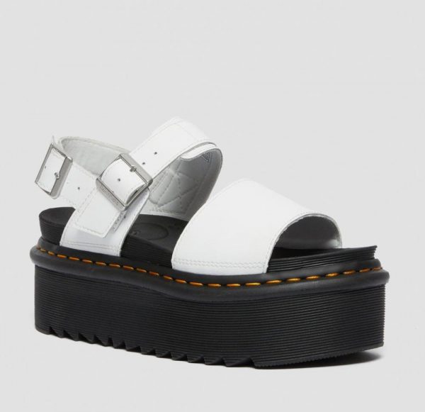 DR MARTENS VOSS QUAD HYDRO LEATHER STRAP PLATFORM SANDALS WHITE