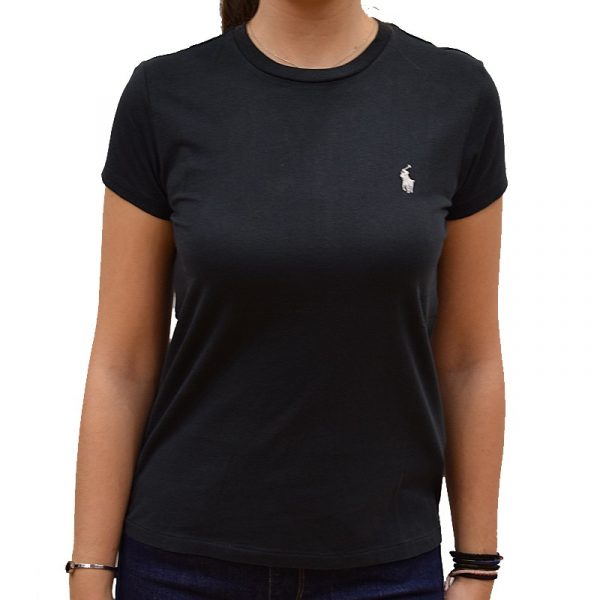 EMPORIO ARMANI WOMAN LOGO SERIES STRETCH COTTON BOAT NECK T-SHIRT BLACK