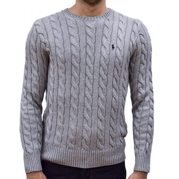 POLO RALPH LAUREN M CLASSICS LONG SLEEVE KNIT COTTON SWEATER GREY