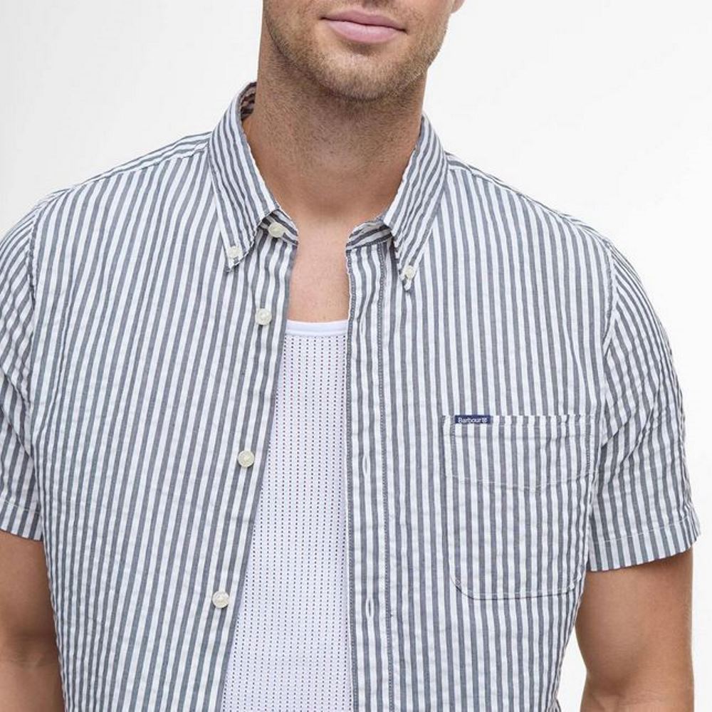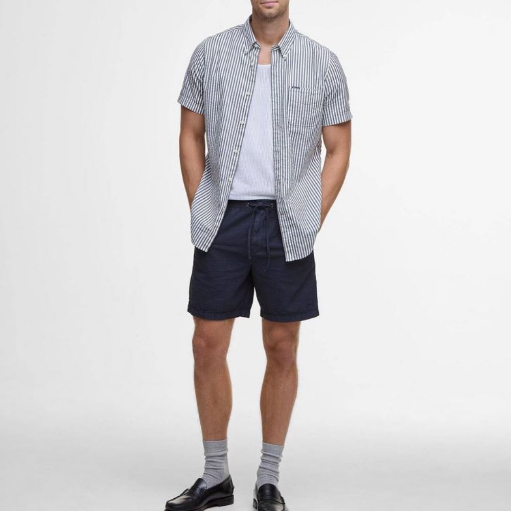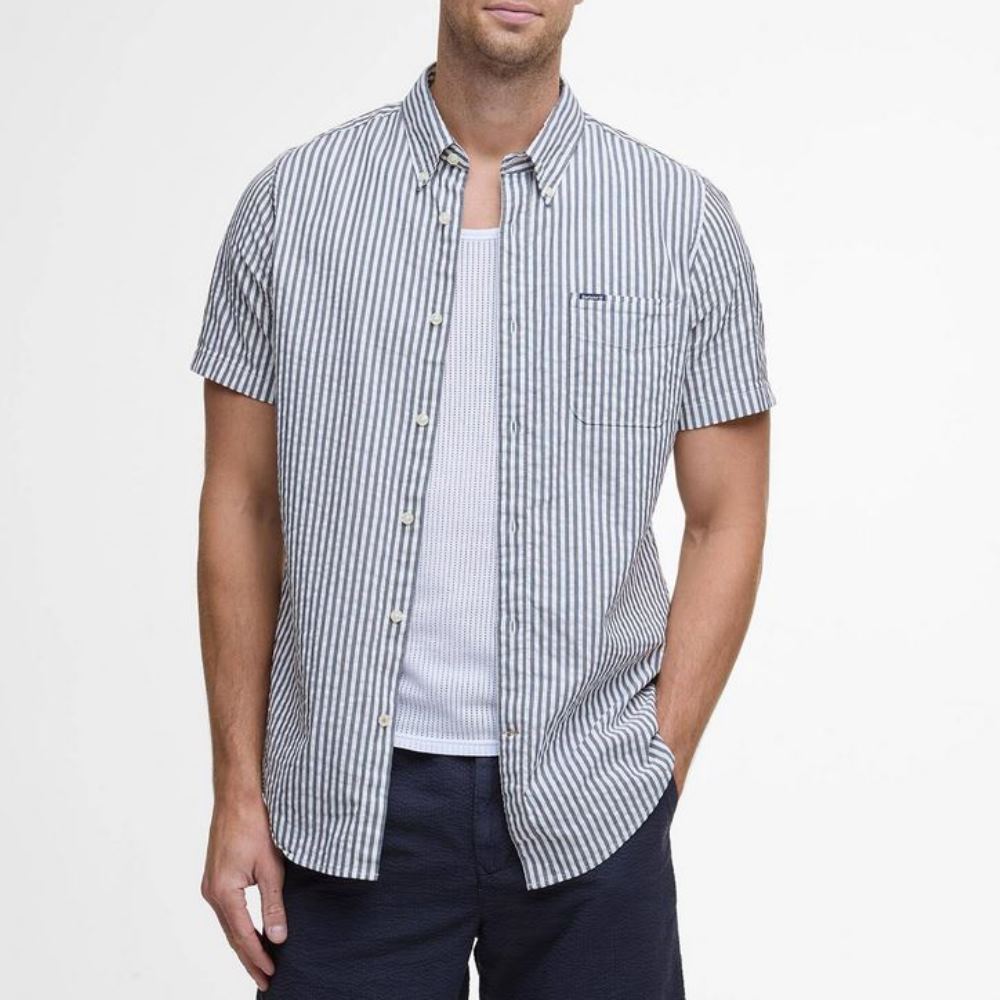 BARBOUR MEN’S CRESSWELL SEERSUCKER REGULAR SHORT-SLEEVED SHIRT NAVY