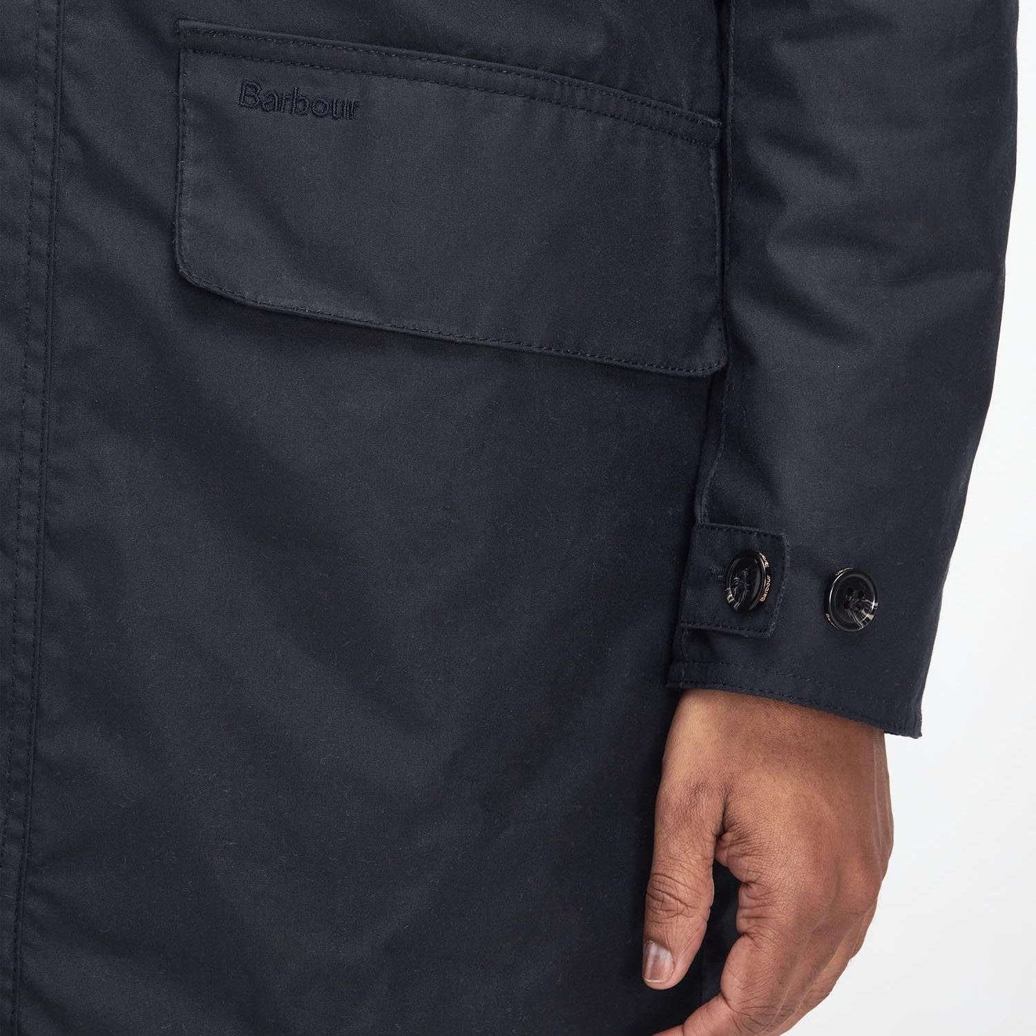 Barbour tonal embroidery to lower left pocket flap
