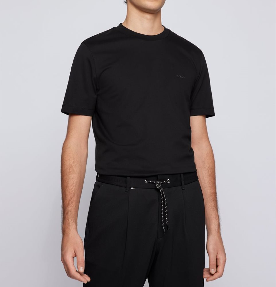 BOSS MEN COTTON THOMPSON 01 JERSEY SHORT SLEEVE T-SHIRT BLACK