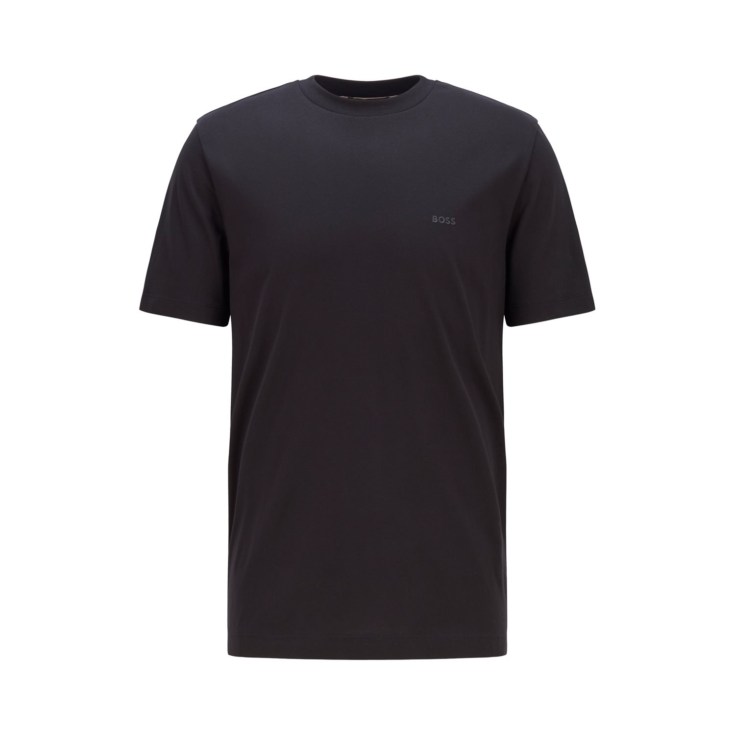 T-shirt features a rubber-printed BOSS logo at the left chest and a signature stripe inside the collar.