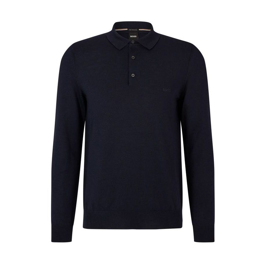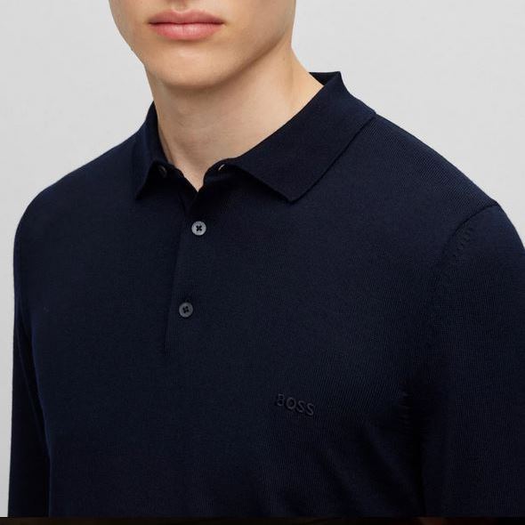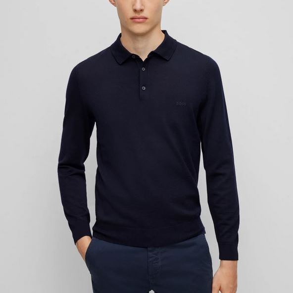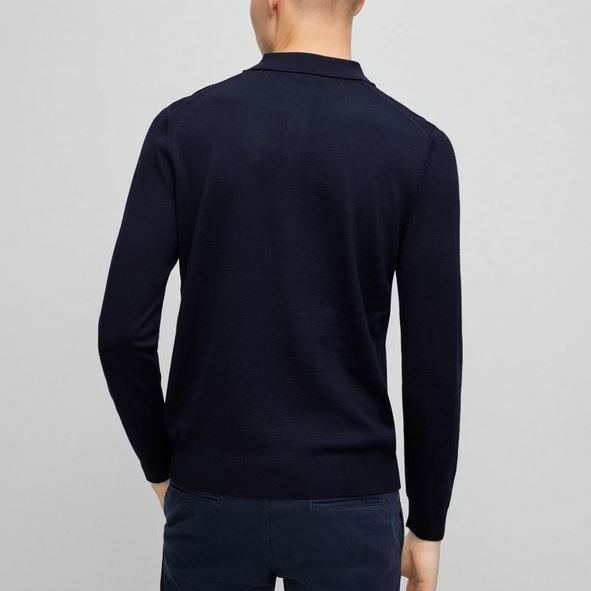 BOSS MEN BONO-L POLO SWEATER IN VIRGIN WOOL WITH EMBROIDERED LOGO DARK BLUE