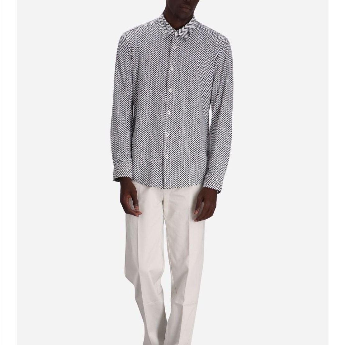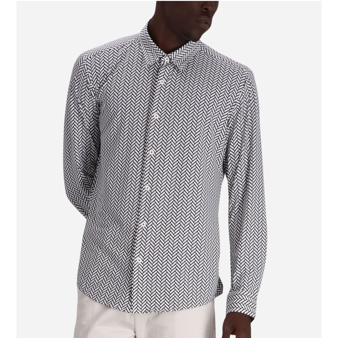 BOSS MEN P-ROAN-KENT GEOMETRIC-PRINT LONG-SLEEVE SHIRT BLACK/WHITE
