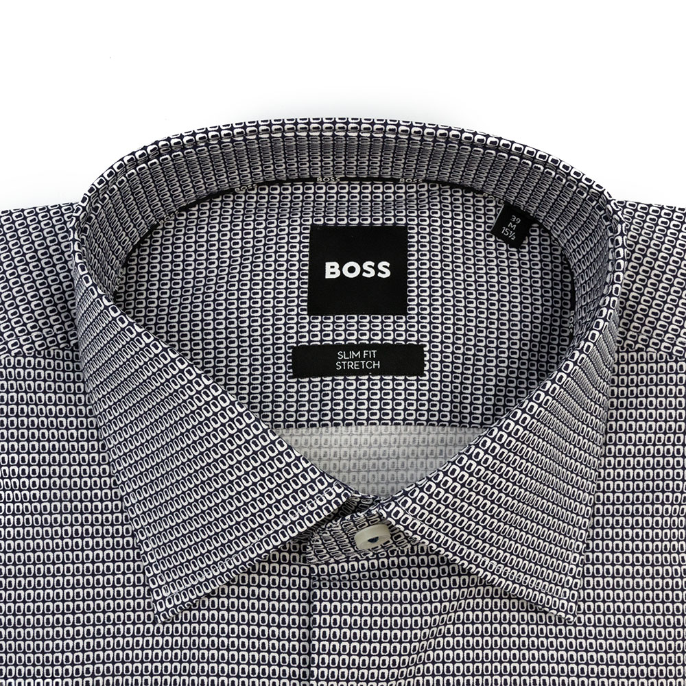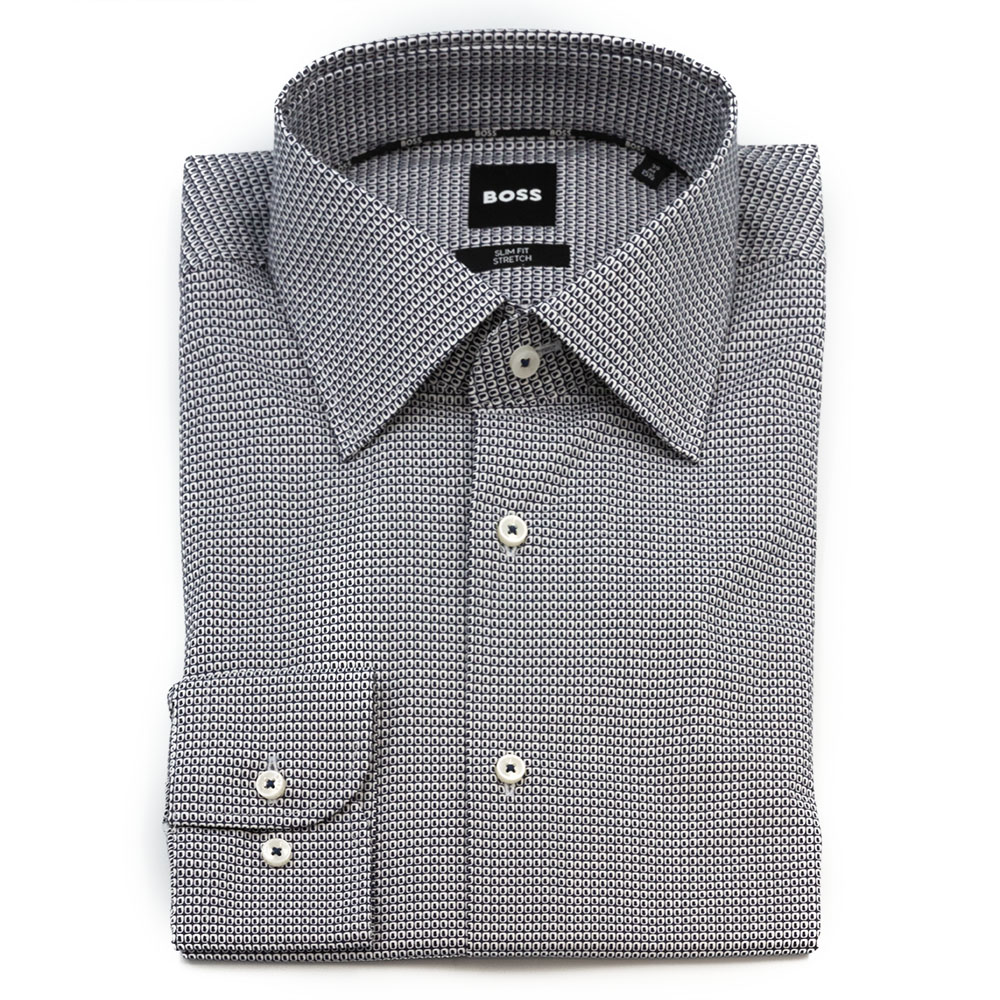 BOSS MEN H-HANK KENT-C1-214 SLIM-FIT STRECH SHIRT COTTON POPLIN DARK BLUE