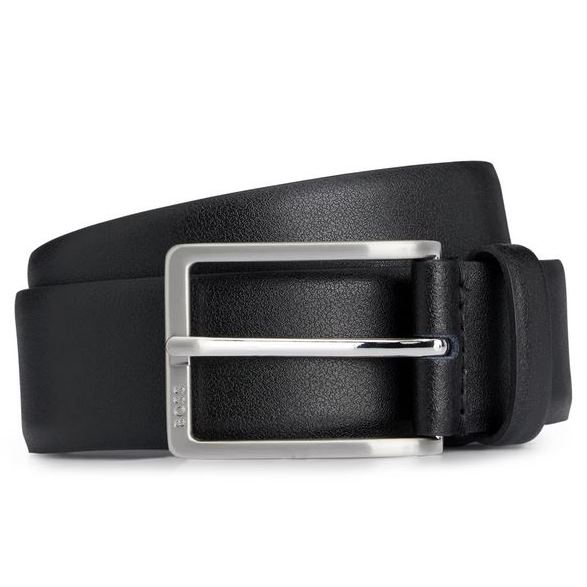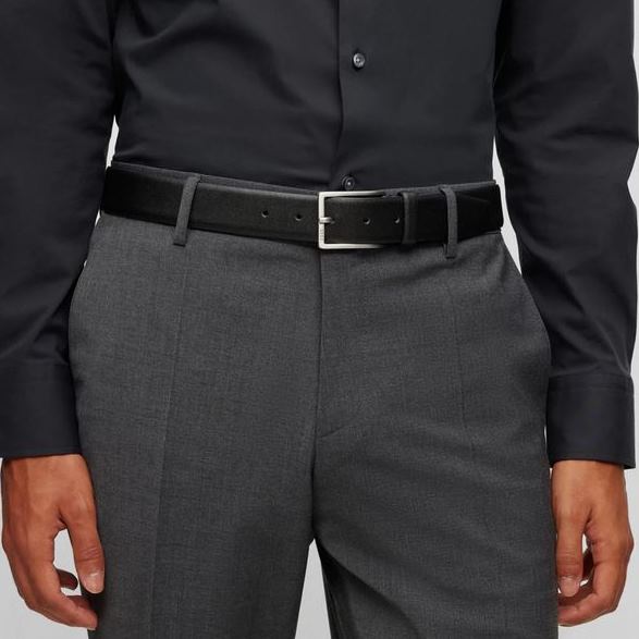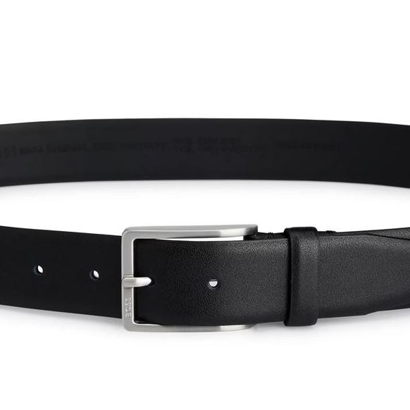 An elegant 3.5cm belt by BOSS made in Italy from Italian leather with a logo-engraved
