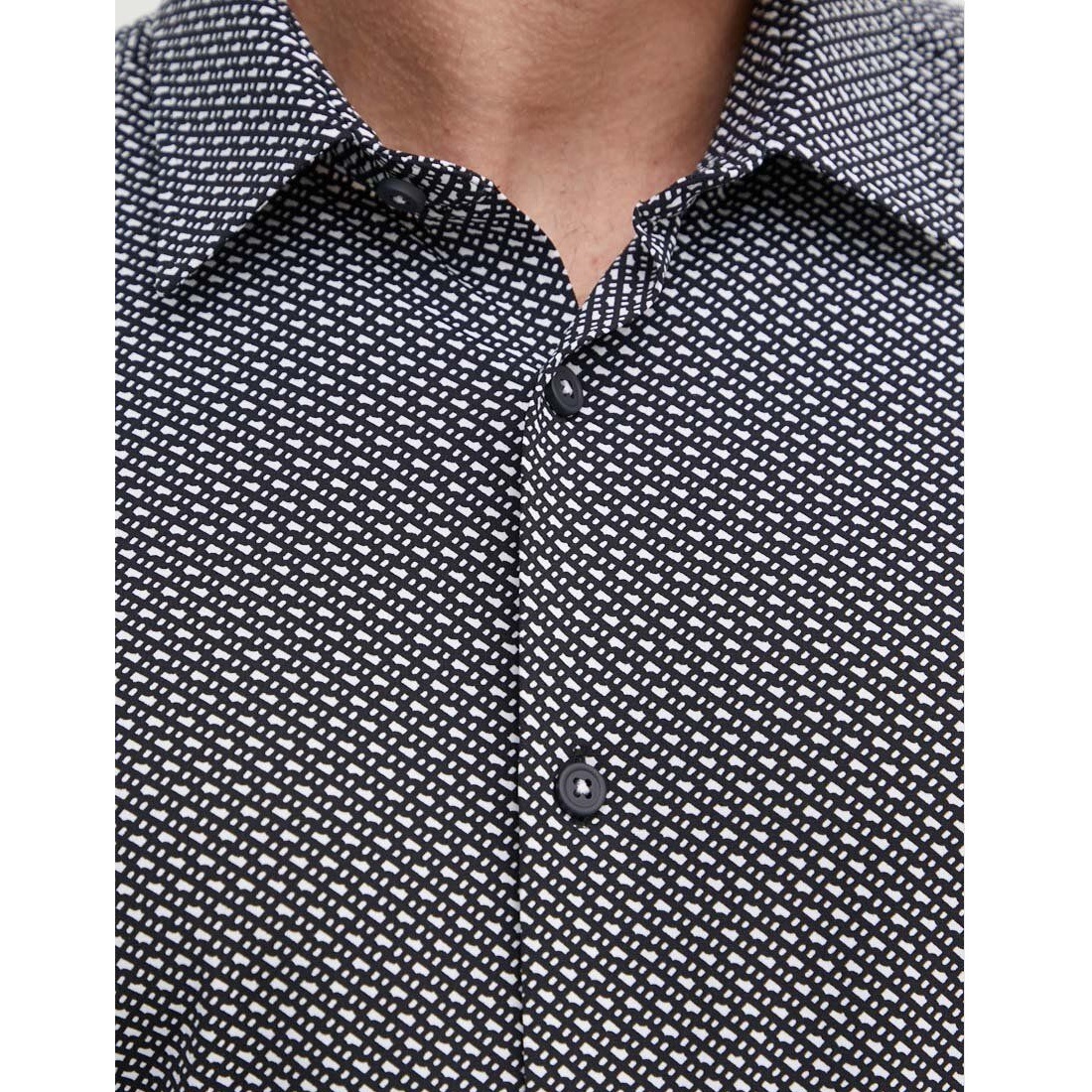 BOSS MEN P-ROAN-KENT SLIM FIT MONOGRAM-PRINT PERFORMANCE SHIRT BLACK/WHITE
