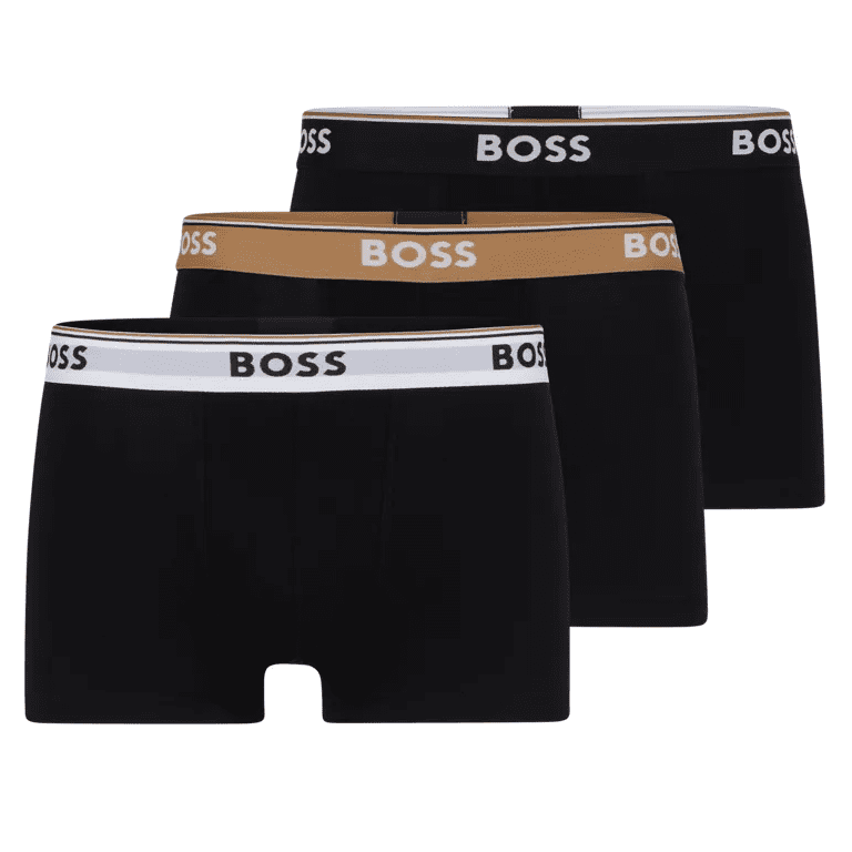 BOSS MEN THREE-PACK OF STRETCH-COTTON TRUNKS WITH LOGO WAISTBANDS BLACK
