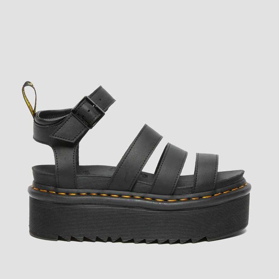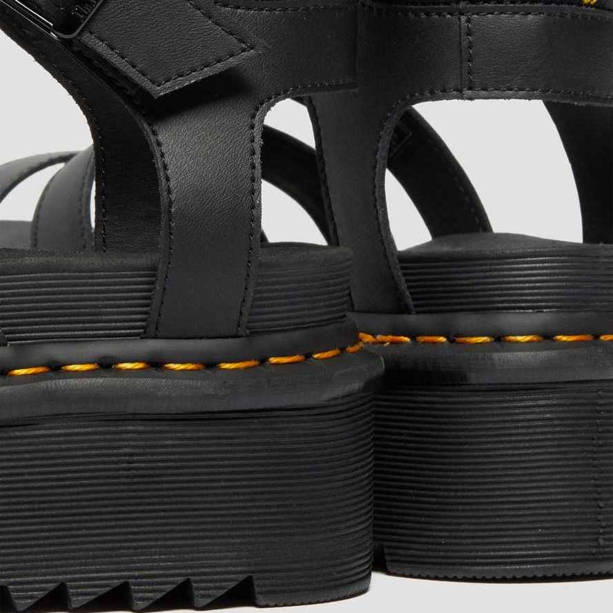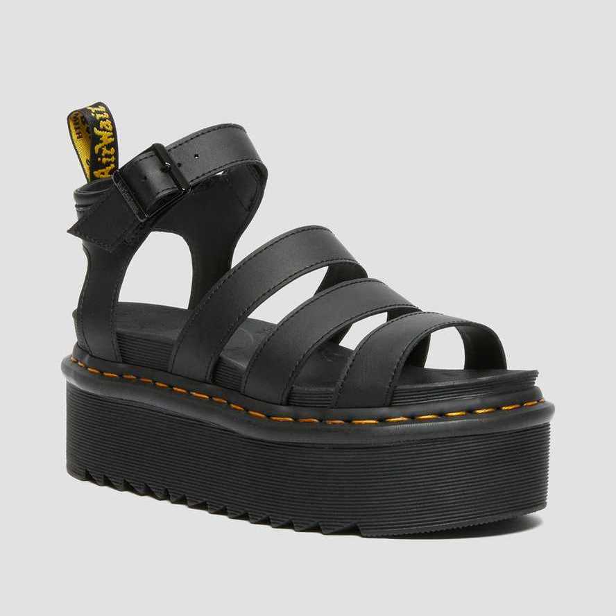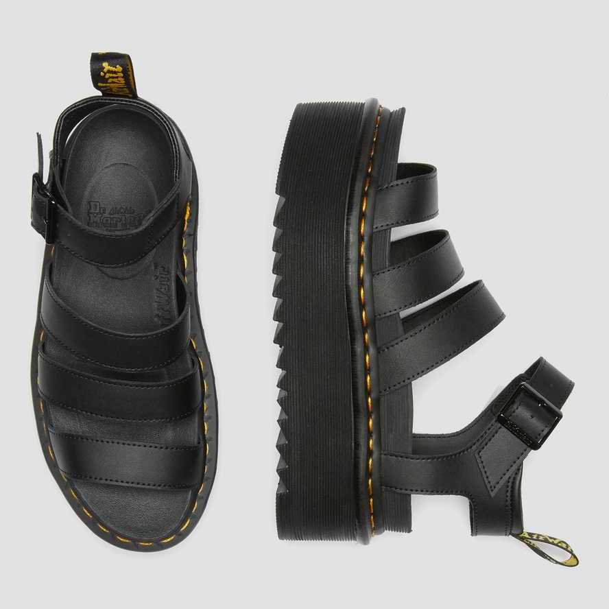 DR MARTENS BLAIRE HYDRO LEATHER PLATFORM STRAP SANDALS BLACK