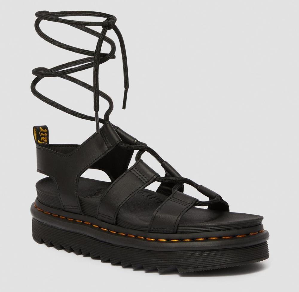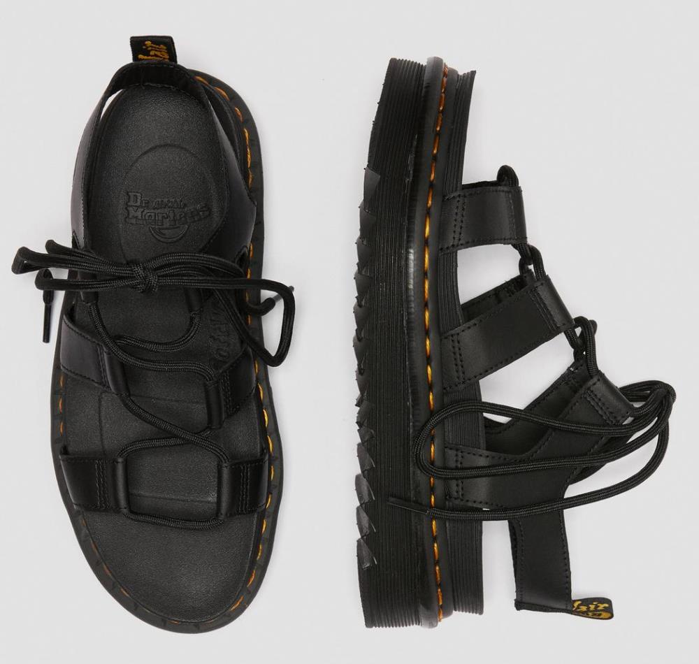 DR MARTENS NARTILLA LACE UP HYDRO LEATHER SANDALS BLACK