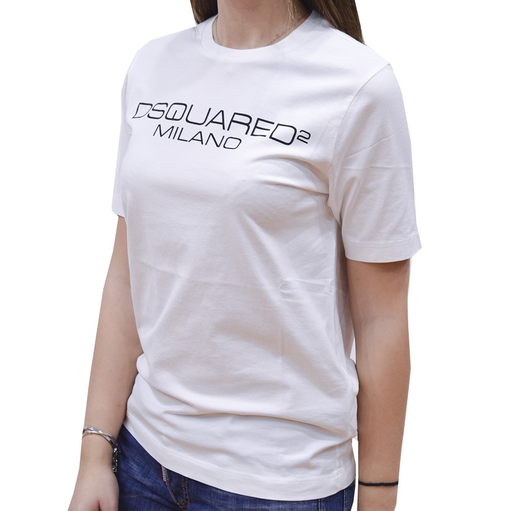 DSQUARED2 COTTON JERSEY MILANO T-SHIRT WOMAN WHITE