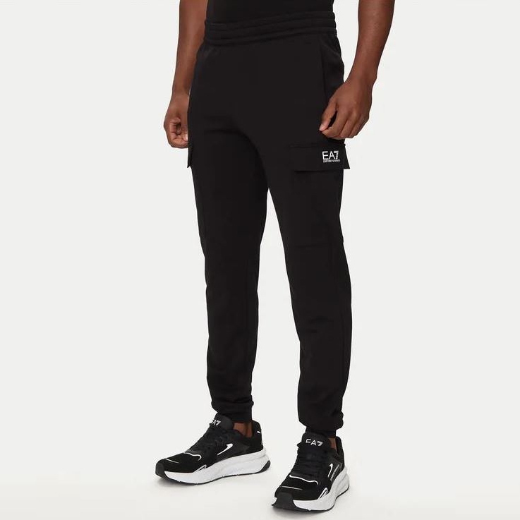 EMPORIO ARMANI MEN WHITE EA7 CORE IDENTITY COTTON CARGO TROUSERS BLACK