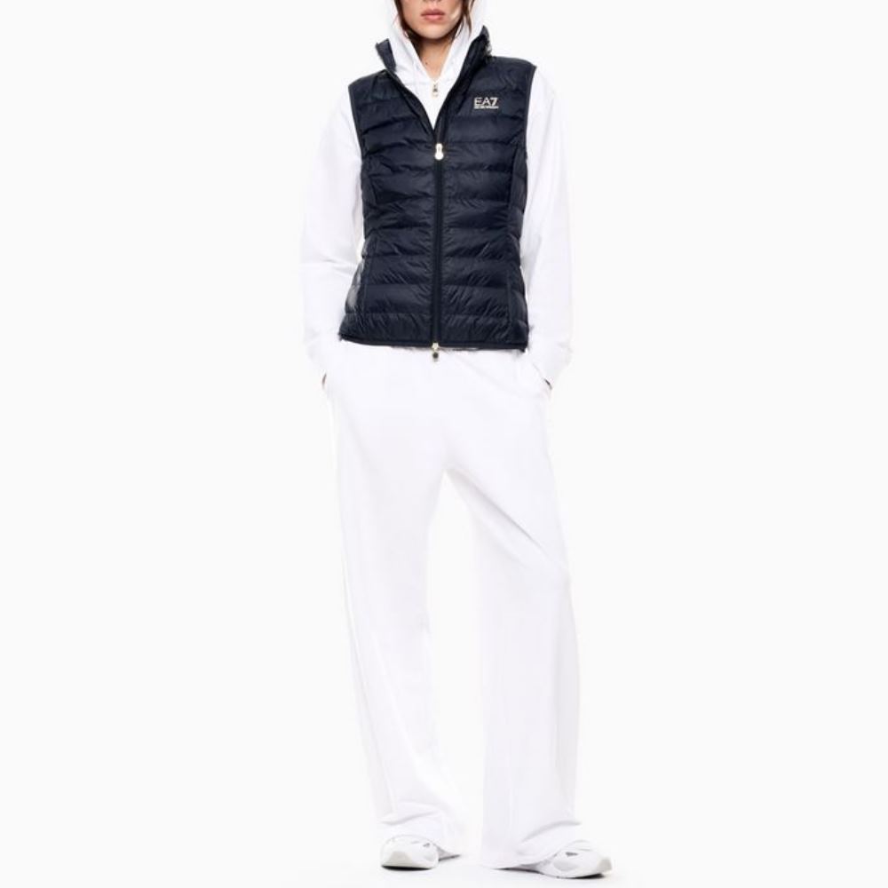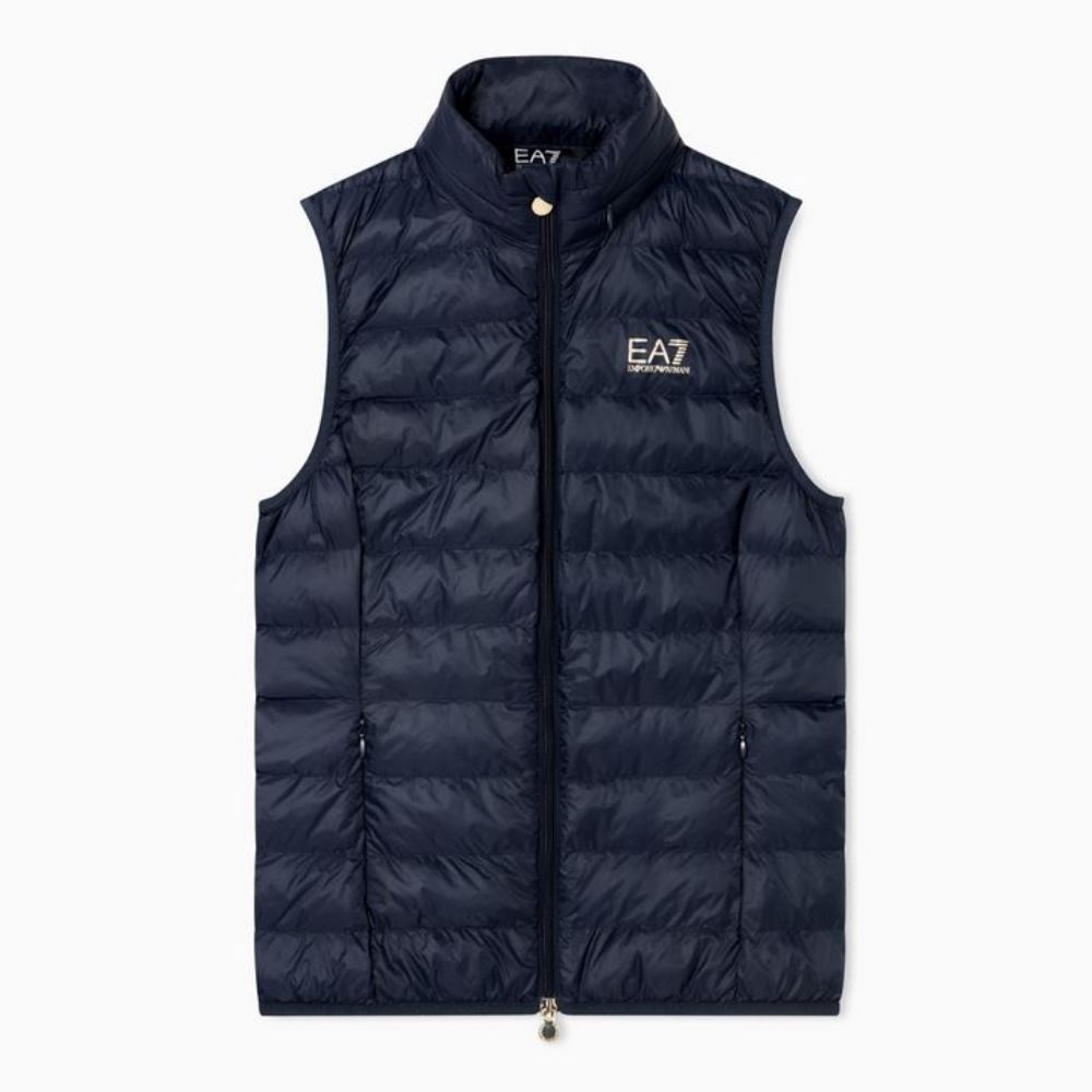 Padded gilet with a zip fastening and two side zip pockets, made of lightweight nylon with a wind-proof treatment. The comfortable and versatile style is embellished with the iconic contrasting EA7 logo, the perfect piece to take with you on your travels, thanks to the convenient dust bag for storing it.