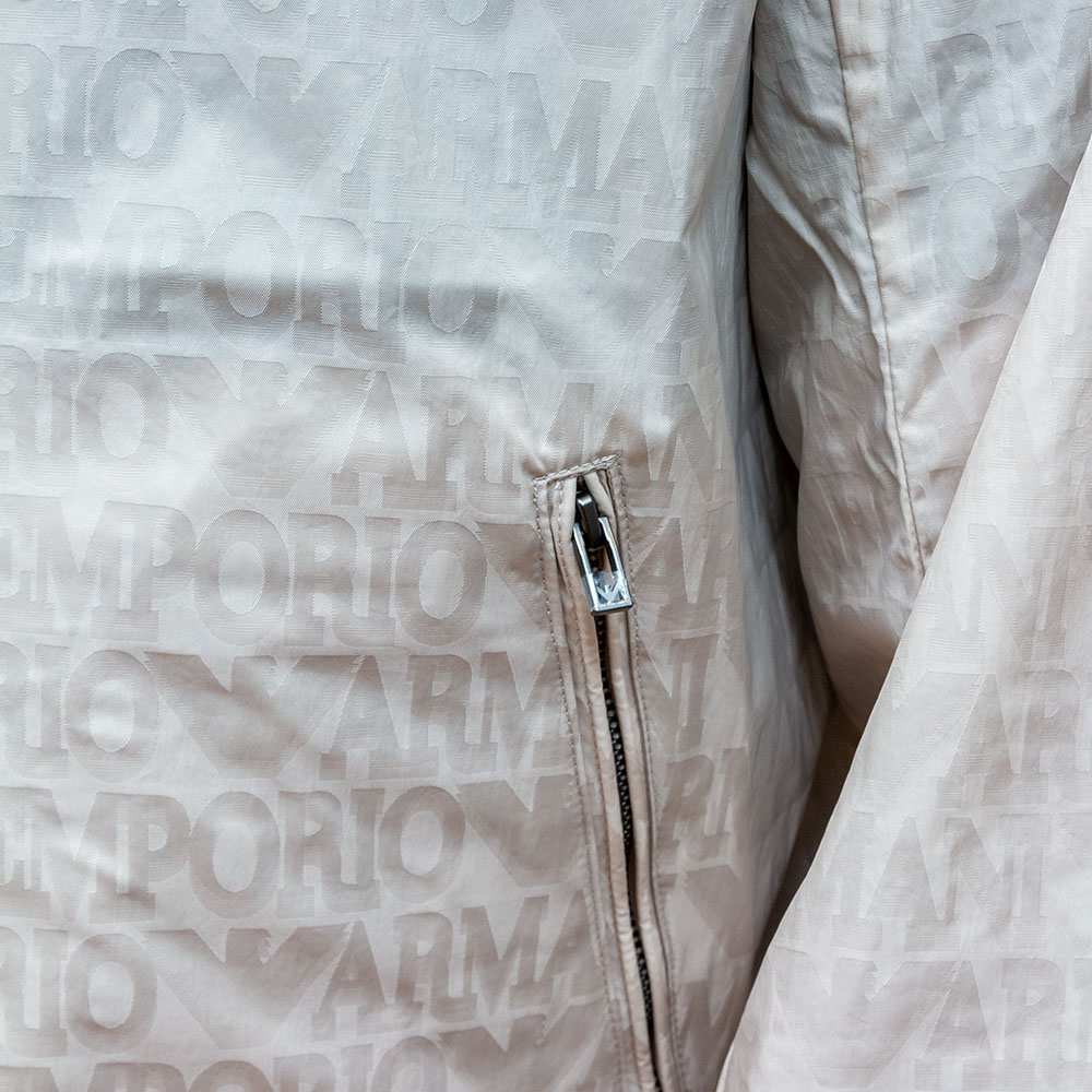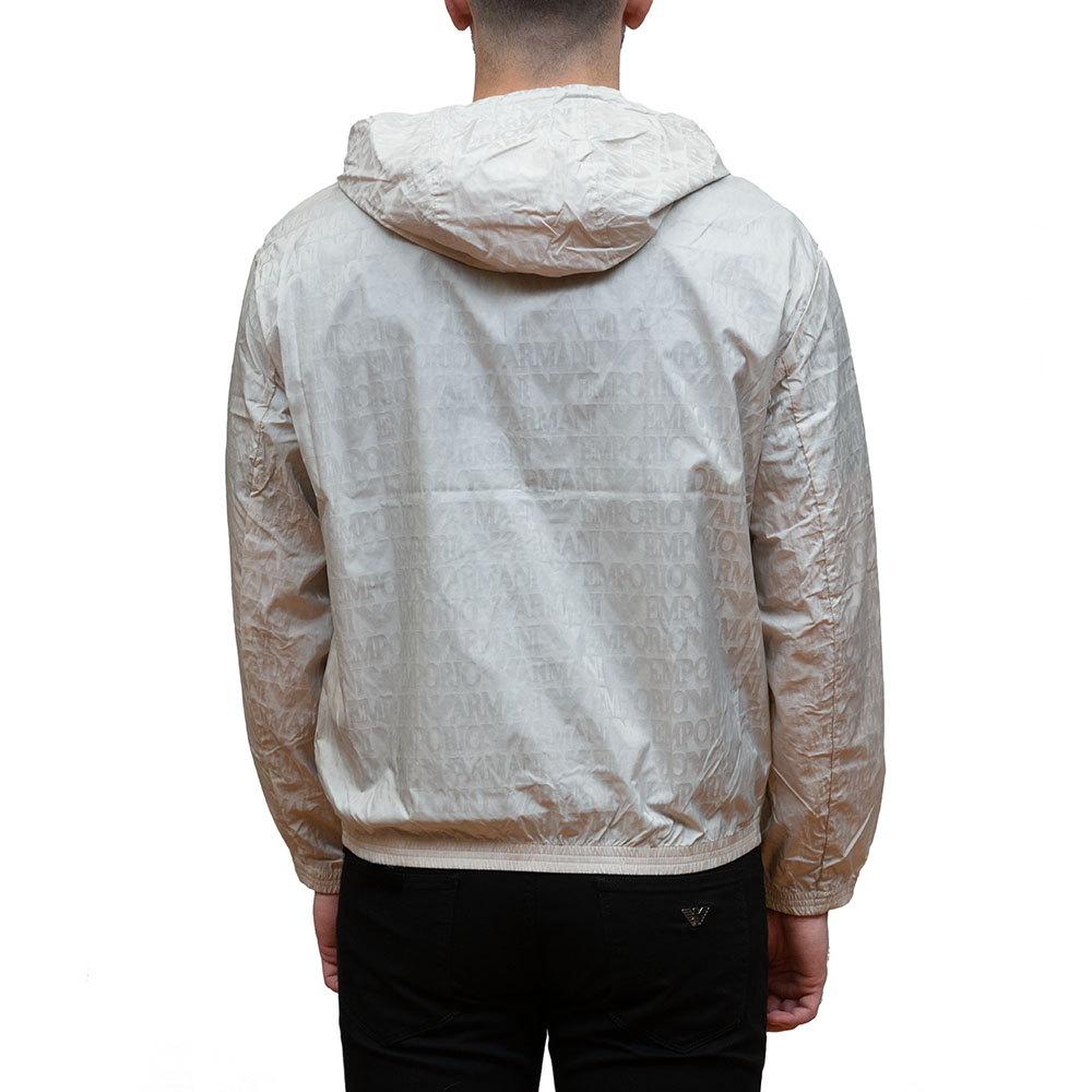 EMPORIO ARMANI EA7 MEN ALL-OVER LOGO NYLON BLOUSON JACKET SILVER CLOUD