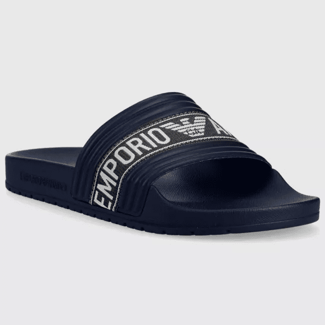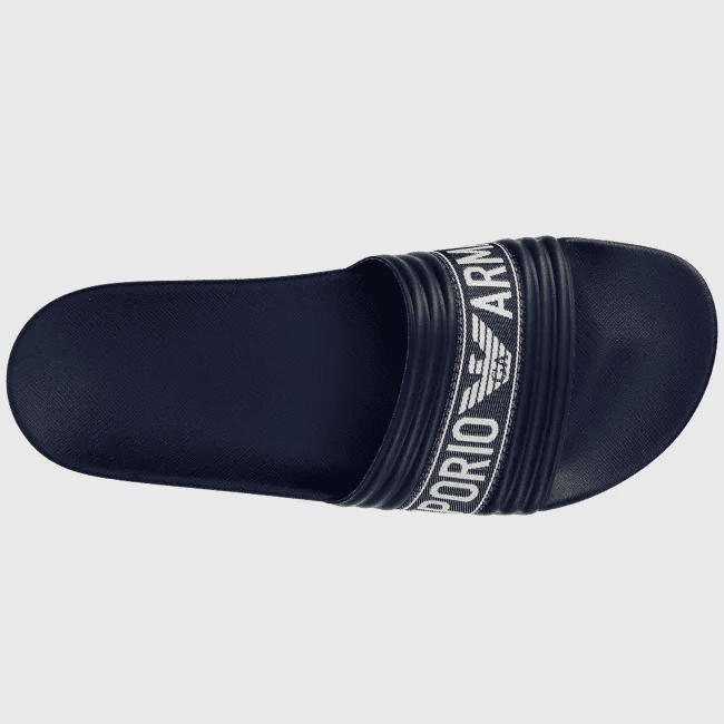 EMPORIO ARMANI MAN PVC SLIDERS WITH JACQUARD LOGO RIBBON BLUE