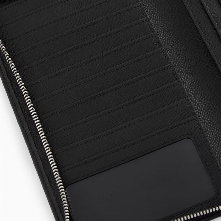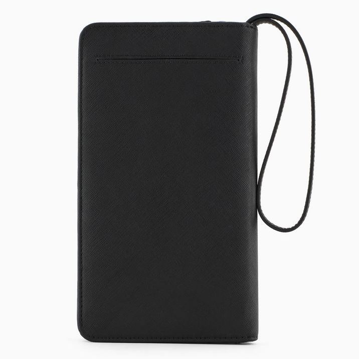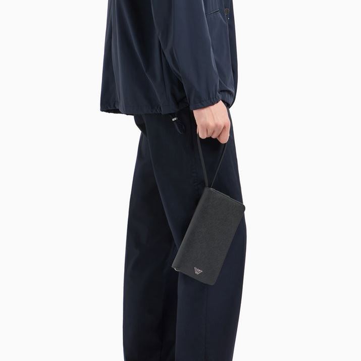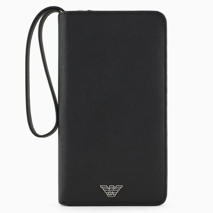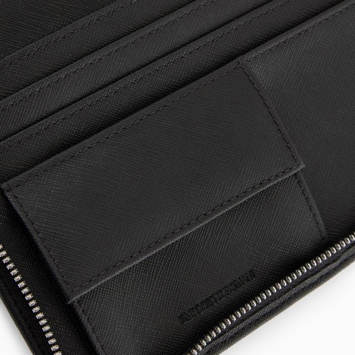 EMPORIO ARMANI MEN ASV REGENERATED SAFFIANO LEATHER ORGANISER WITH EAGLE PLATE BLACK BEAUTY