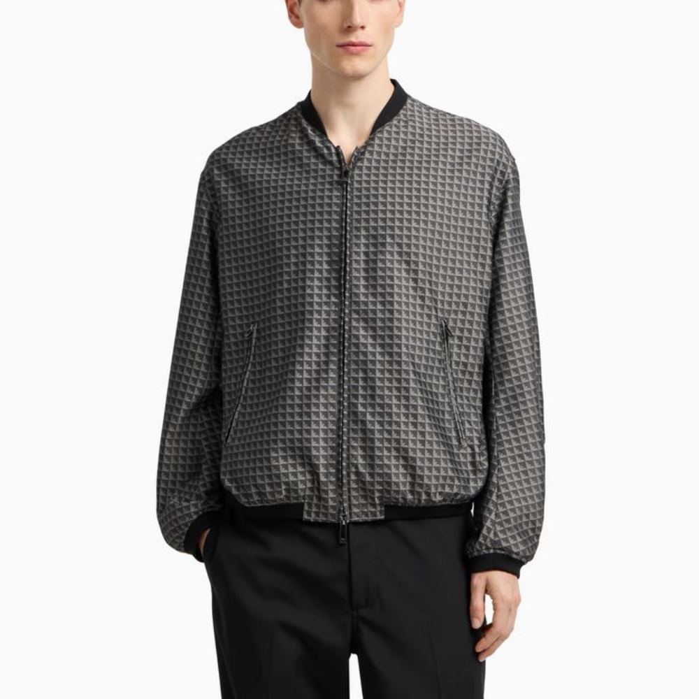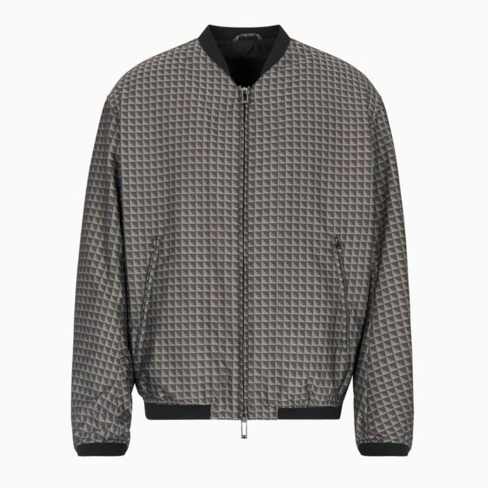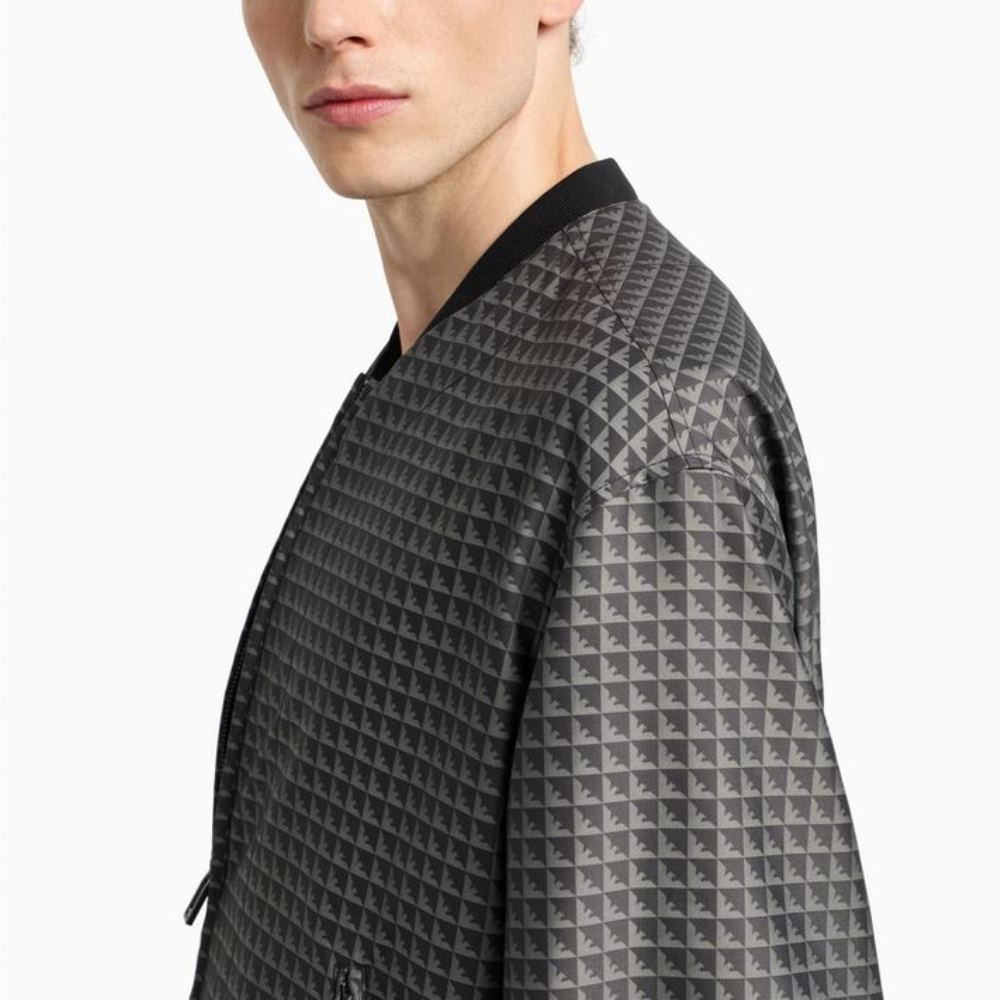EMPORIO ARMANI MEN BLOUSON JACKET WITH REPEATED EAGLE MOTIF GREY