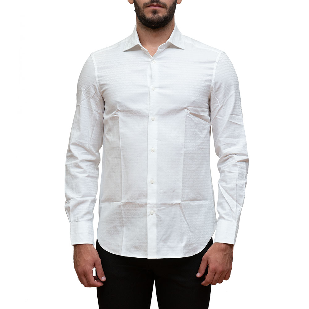 EMPORIO ARMANI MEN COTTON SHIRT WITH ALL-OVER JACQUARD LOGO LETTERING WHITE