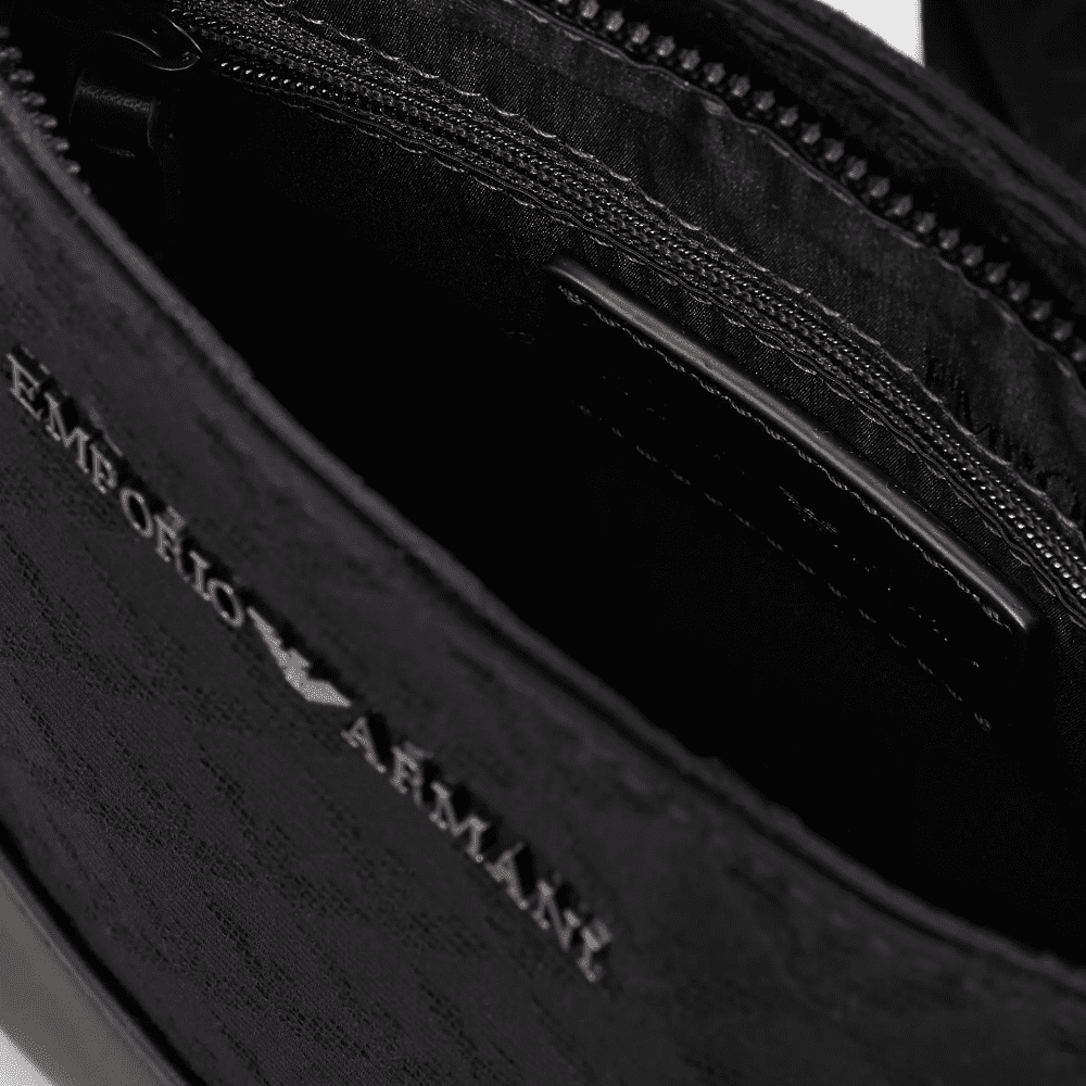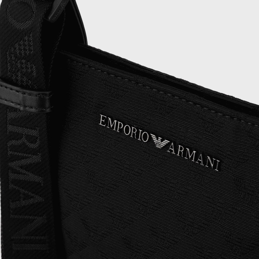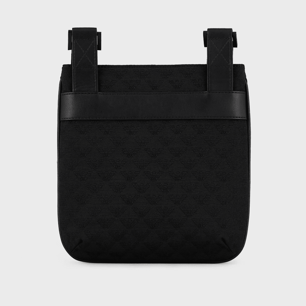 EMPORIO ARMANI MEN FLAT NYLON SHOULDER BAG WITH ALL-OVER JACQUARD EAGLE BLACK