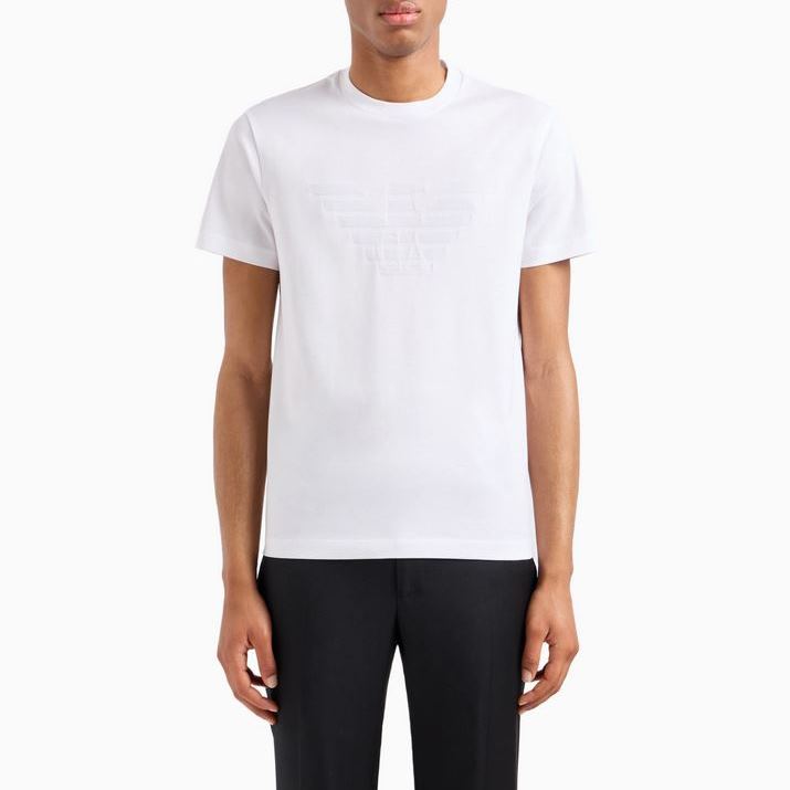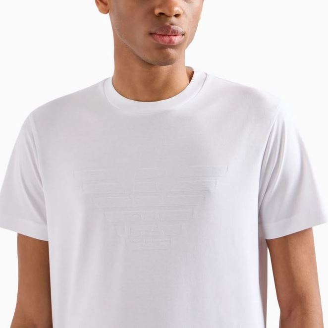 EMPORIO ARMANI MEN JERSEY JACQUARD LOGO T-SHIRT BIANCO