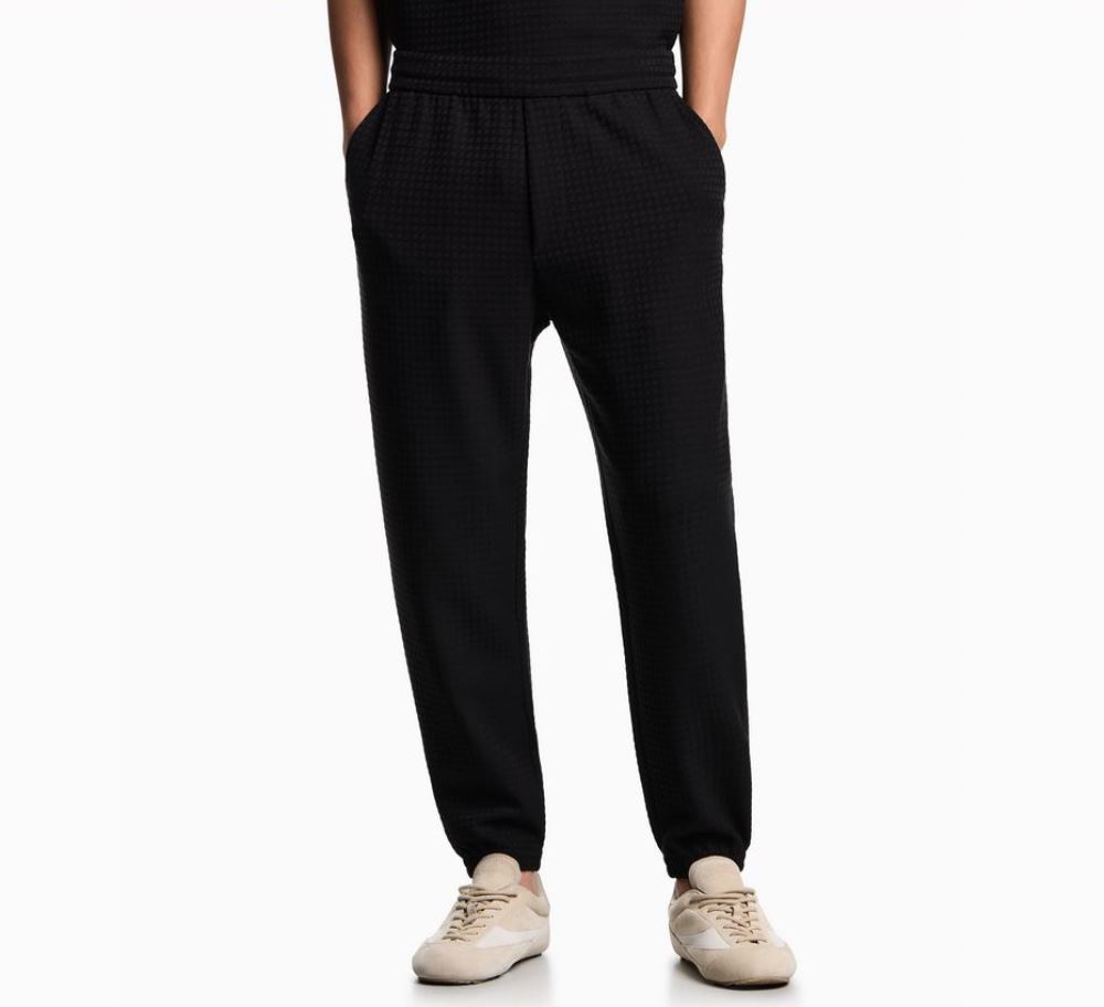 EMPORIO ARMANI MEN LYOCELL BLEND JACQUARD JERSEY TROUSERS FANCY BLACK