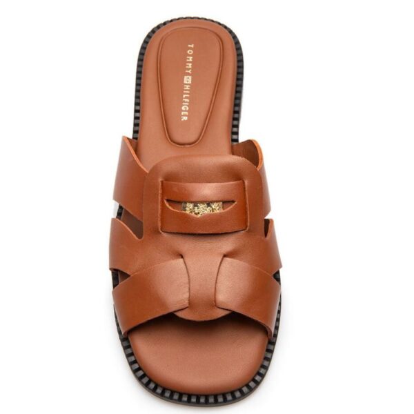 TOMMY HILFIGER SLIPPERS LEATHER CREST SQUARE TOE SANDALS WARM BRONZE