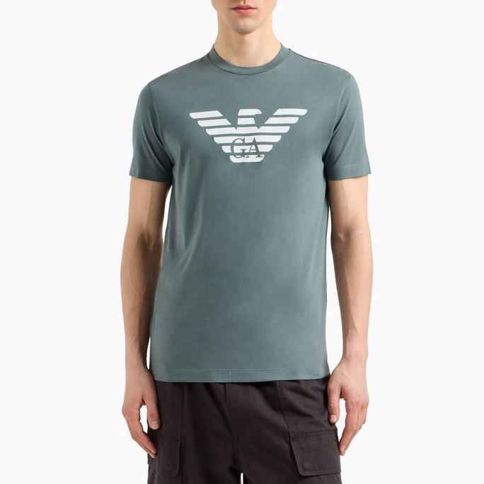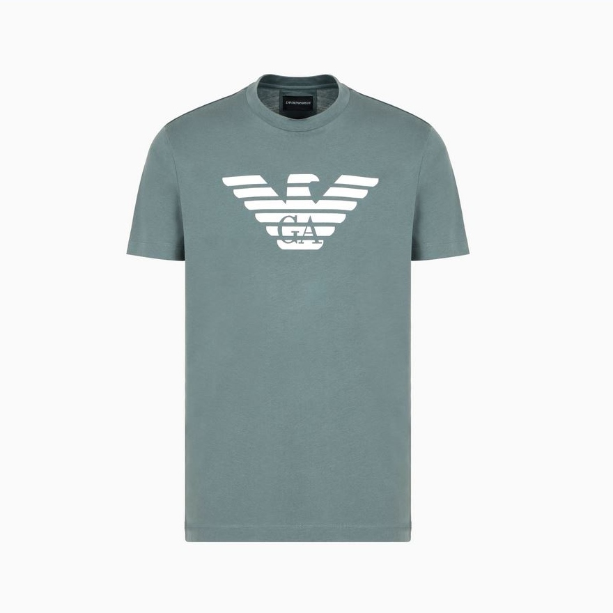 EMPORIO ARMANI PIMA JERSEY T-SHIRT WITH LOGO PRINT BALSAM GREEN