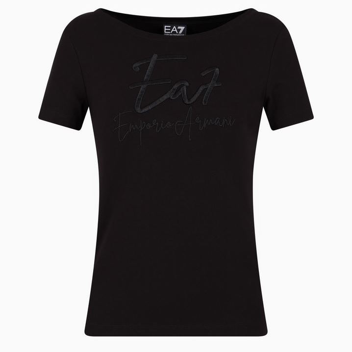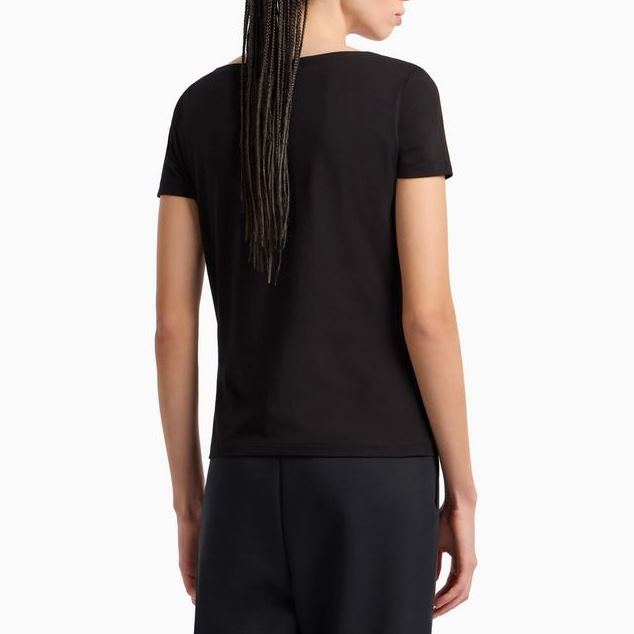EMPORIO ARMANI WOMAN LOGO SERIES STRETCH COTTON BOAT NECK T-SHIRT BLACK