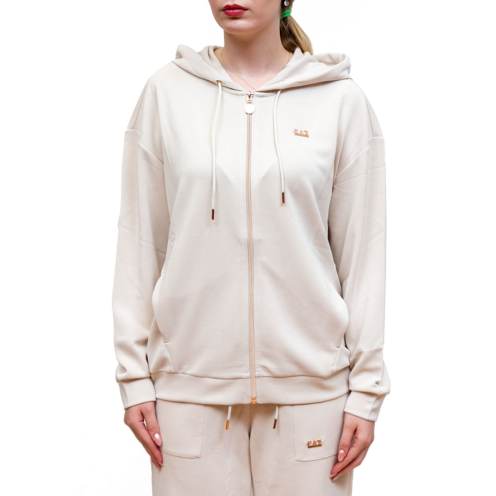 EMPORIO ARMANI ZIP HOODIE WOMEN EA7 WHITE SAND