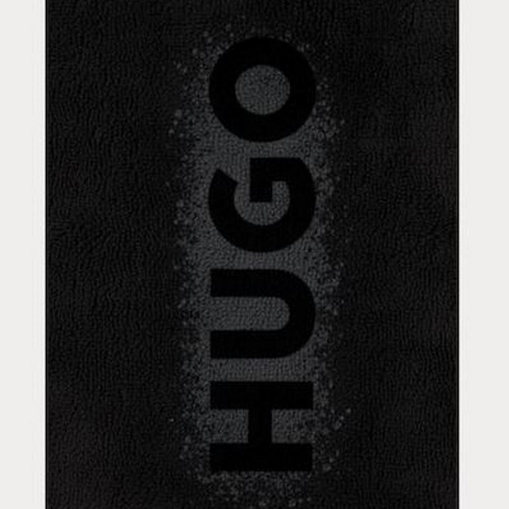 The HUGO SPRAY LOGO towel in deep black combines luxury and modern style.